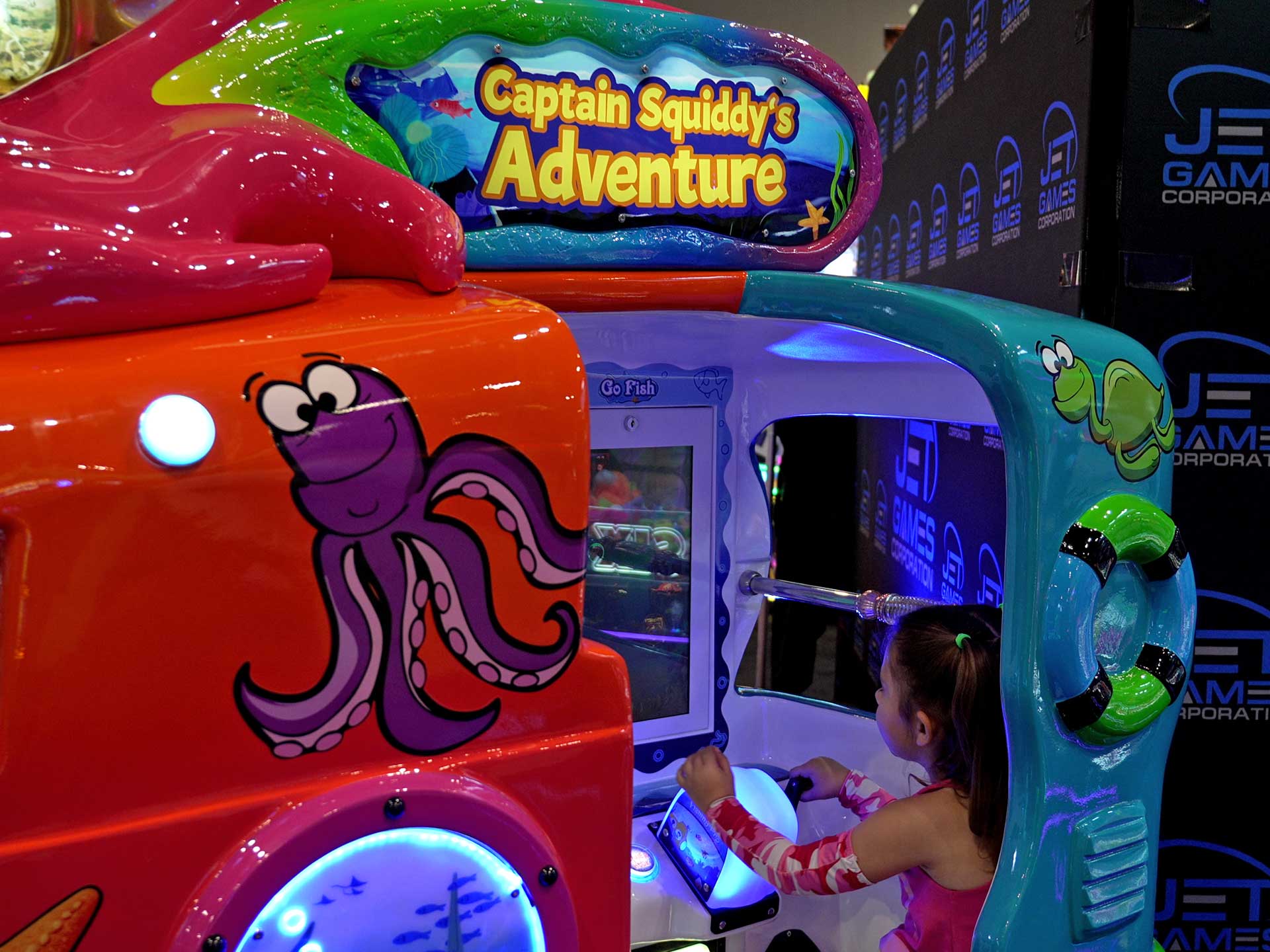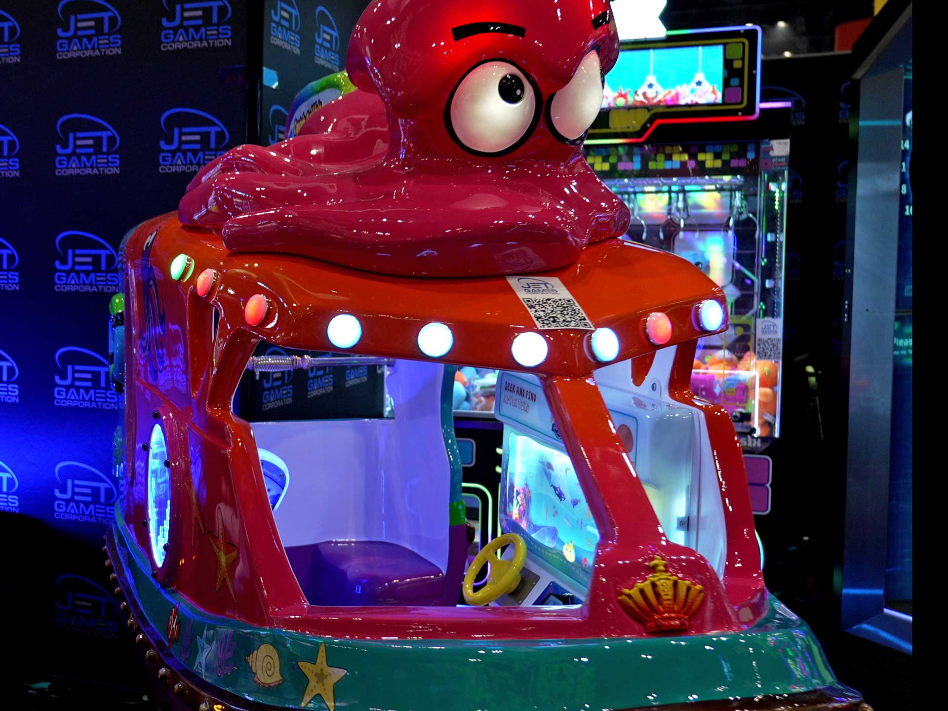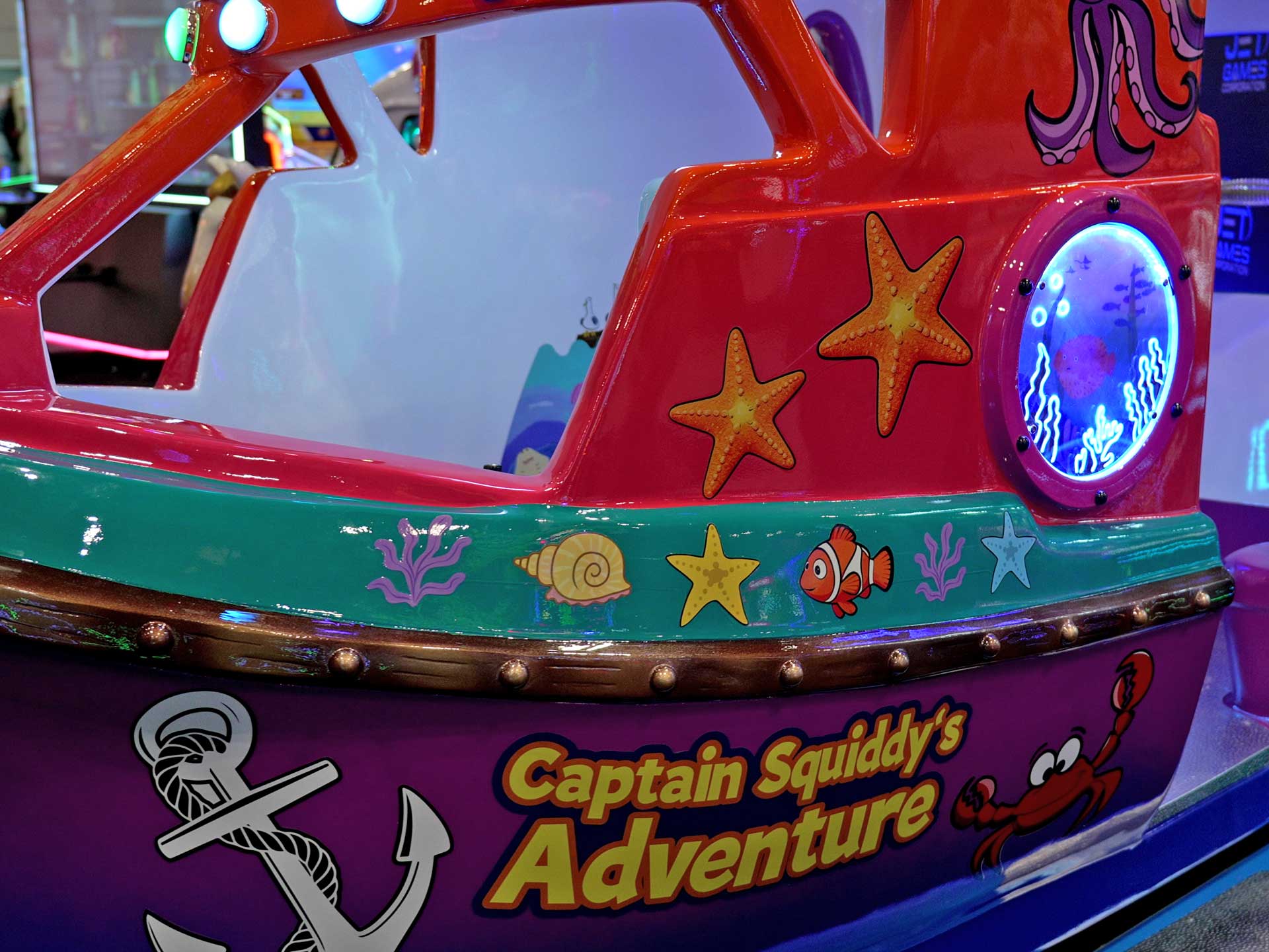 Captain Squiddy’s Adventure is an interactive children’s ride that invites young explorers to embark on an overseas journey. Designed for multiple kids to enjoy together, the ride features interactive screens and responsive handles, allowing children to steer the boat, tap to discover sea creatures, and work as a team to complete fun missions. With colorful animations, lively sounds, it creates an immersive, hands-on experience that blends imagination, teamwork, and excitement into every ride.